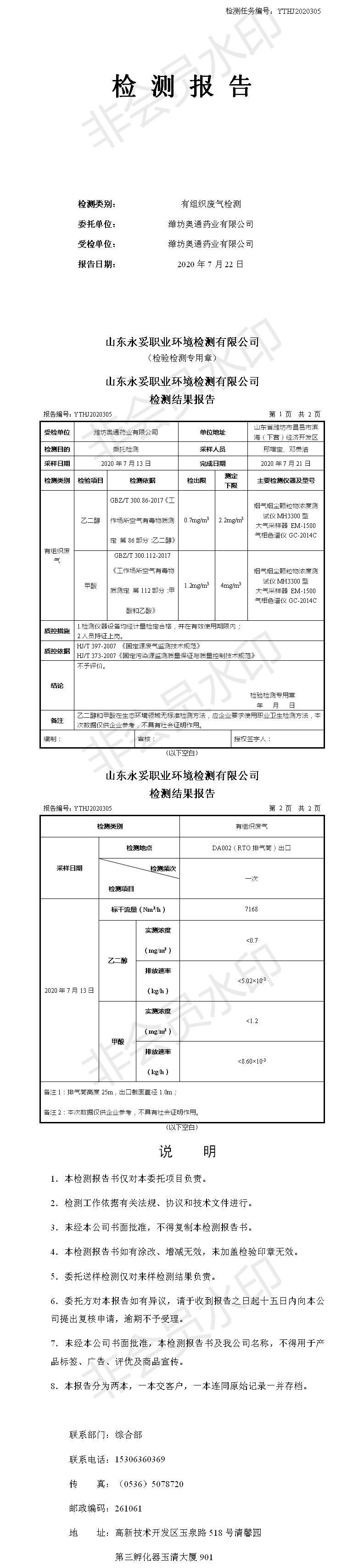 濰坊奧通藥業(yè)有限公司七月環(huán)境檢測報(bào)告