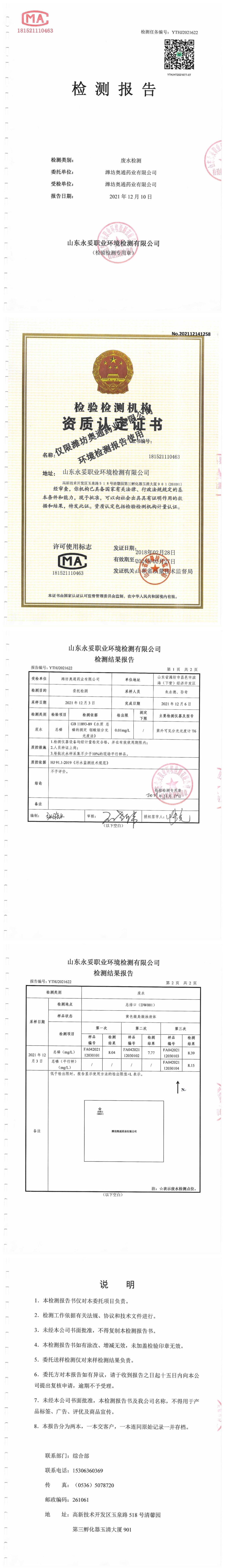 濰坊奧通藥業(yè)有限公司十二月環(huán)境檢測報(bào)告