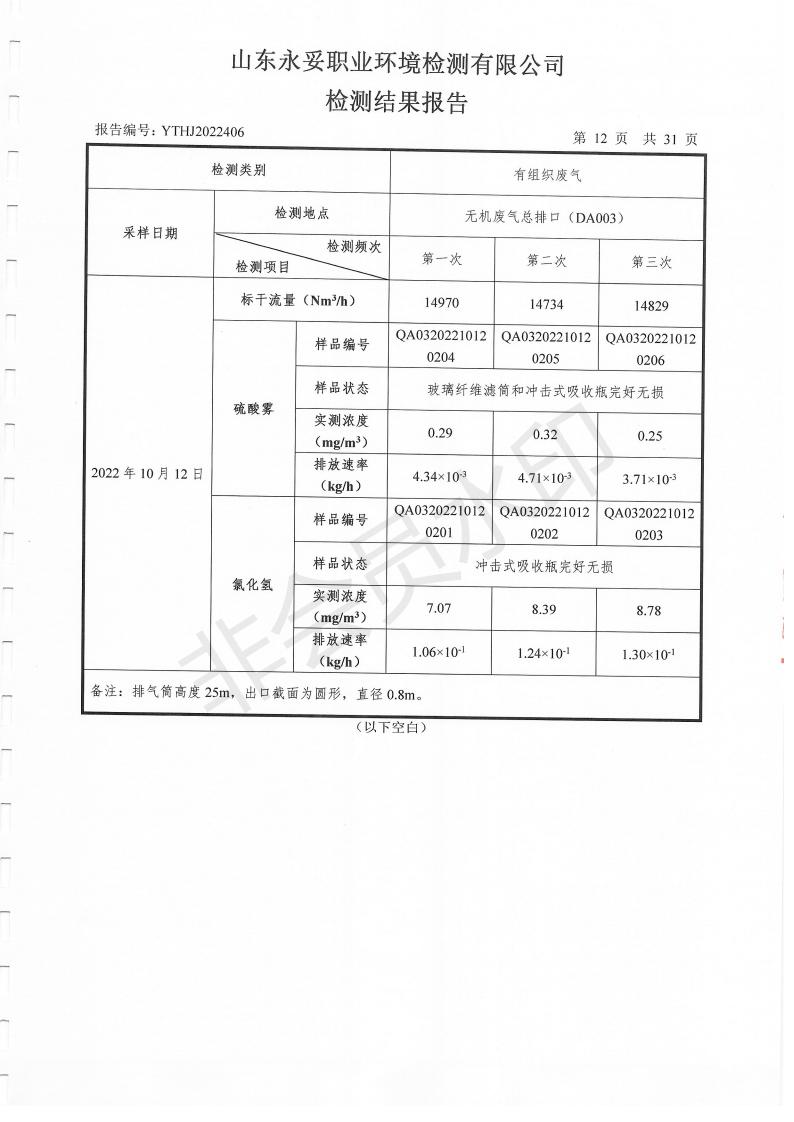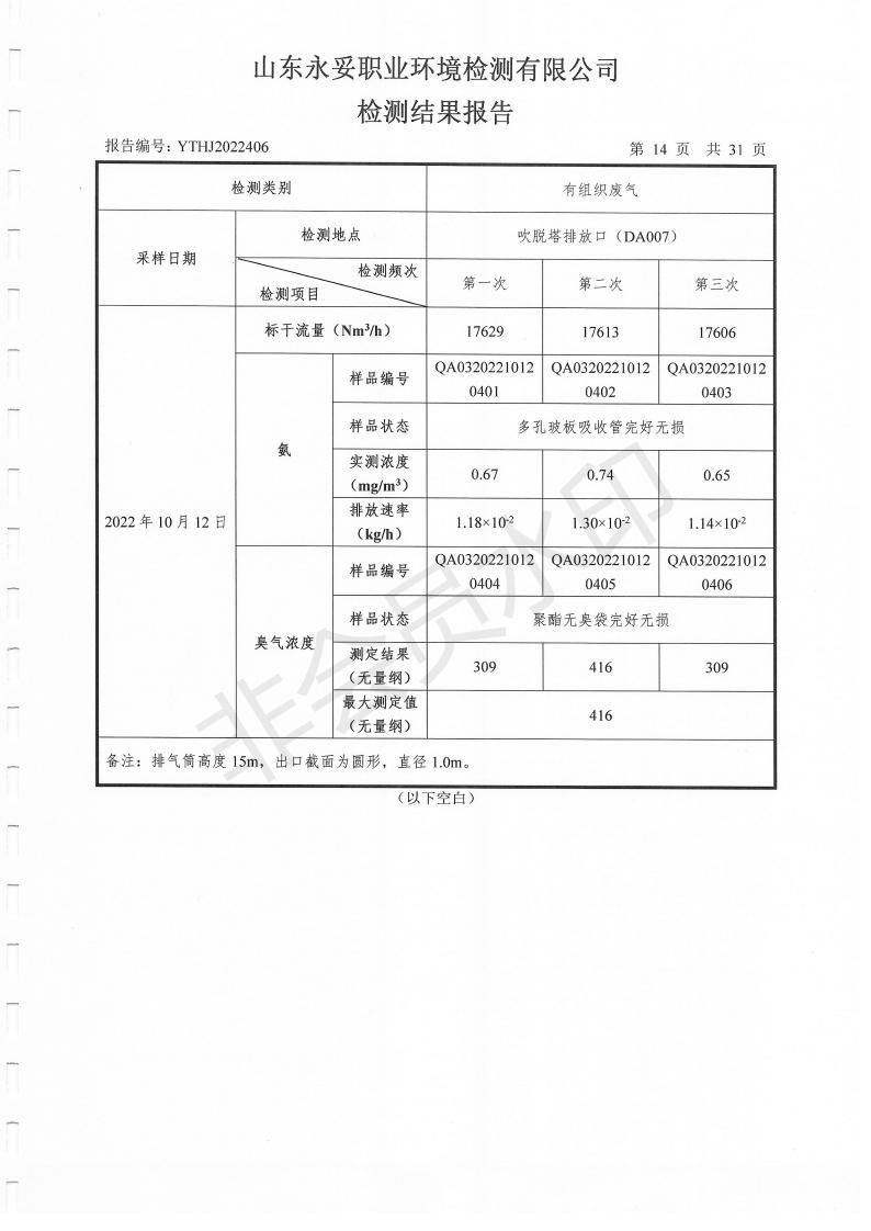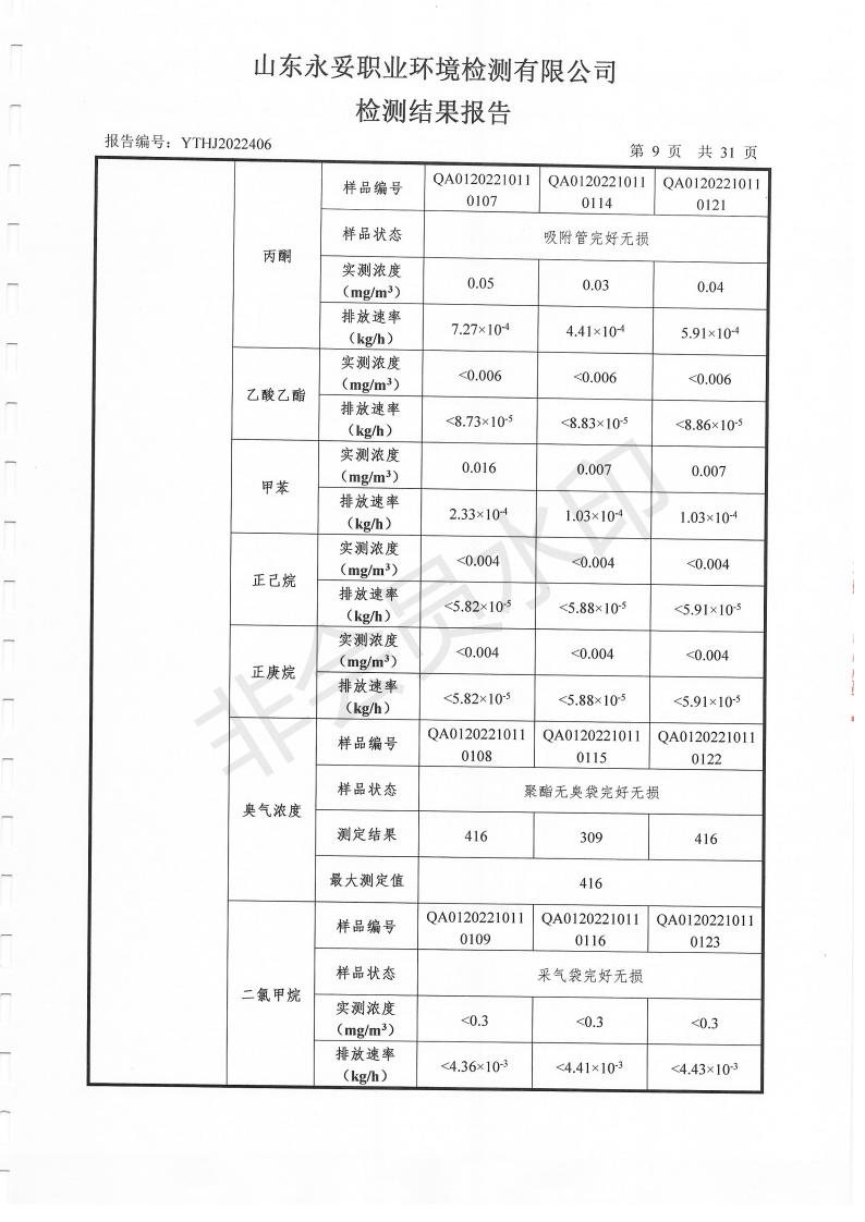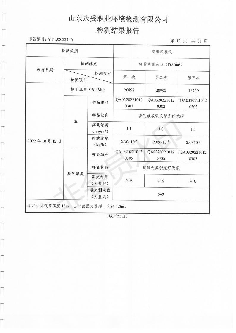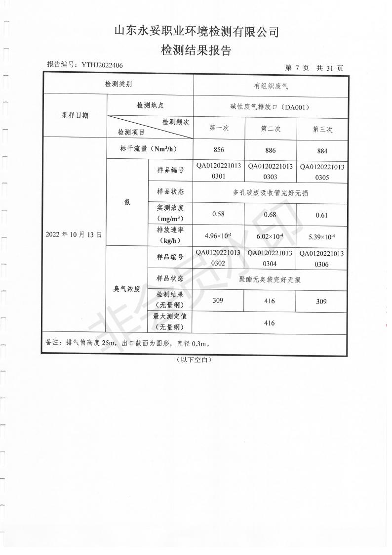 濰坊奧通藥業(yè)有限公司十月環(huán)境檢測報告