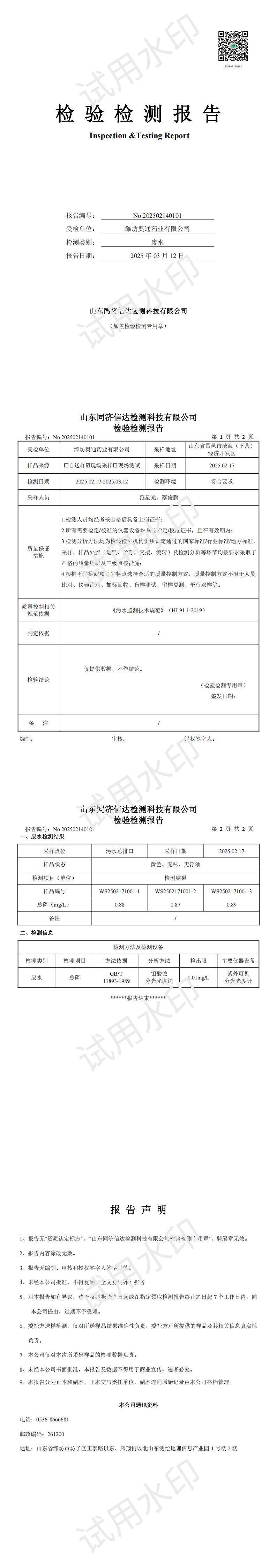 富祥(山東)新材料有限公司二月環(huán)境檢測報告